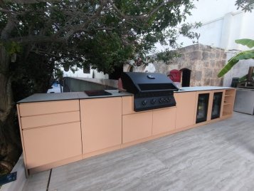 Modulárne riešenie umožňuje vytvoriť kuchyňu presne podľa vašich potrieb. Môžete ju vybaviť pracovnou plochou, úložnými modulmi, grilom, drezom alebo ďalšími prvkami, ktoré premenia varenie vonku na pohodlný a štýlový zážitok.